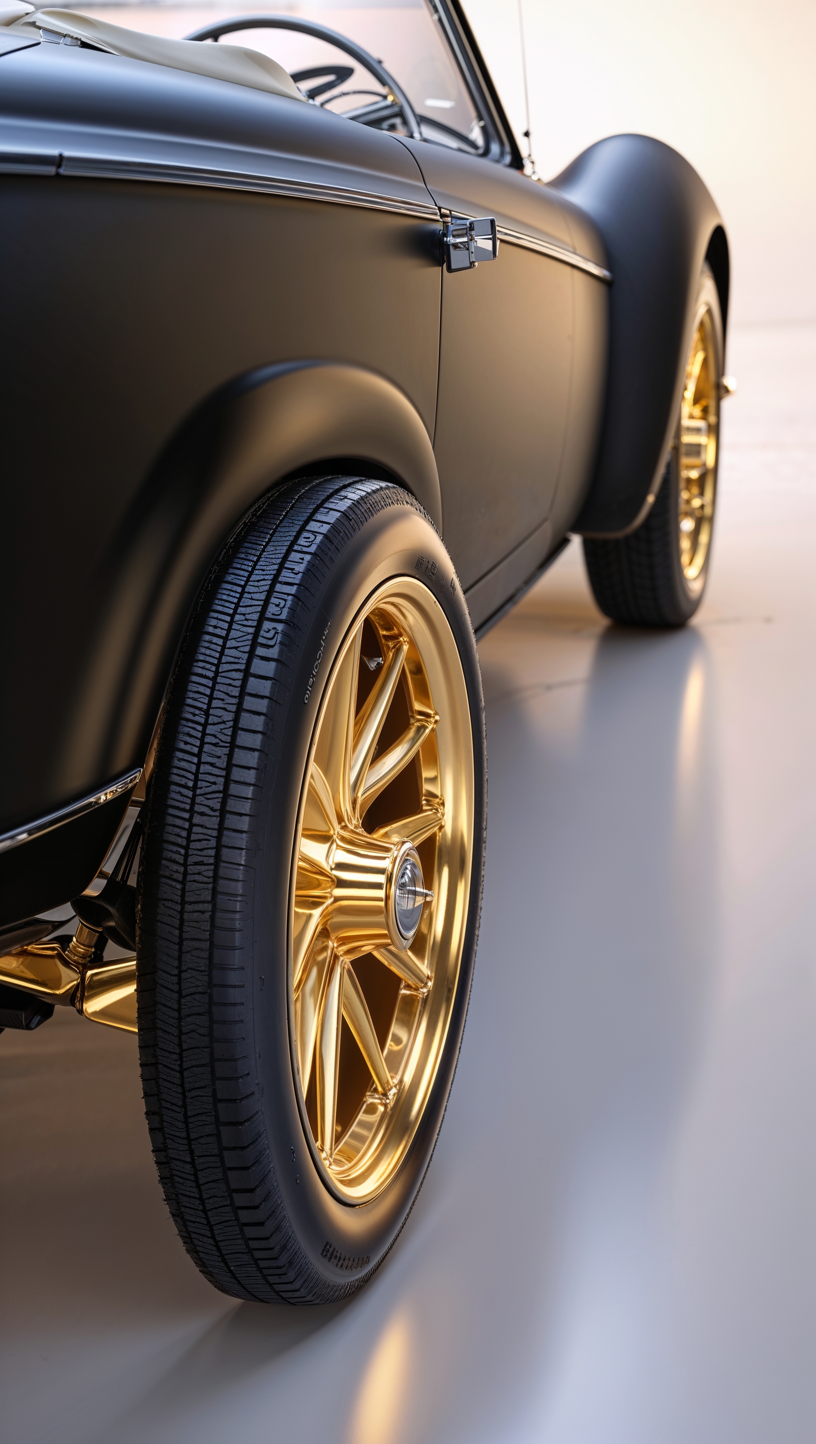 1664x2944 Classic car with gold rims and matte black body