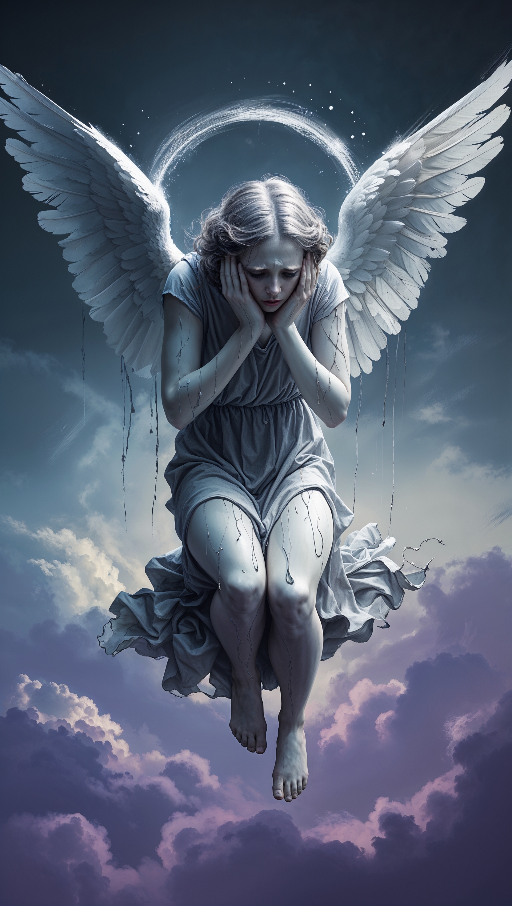 1664x2944 A crying angel falling from the sky, digital art, emotional wallpaper for iPhone