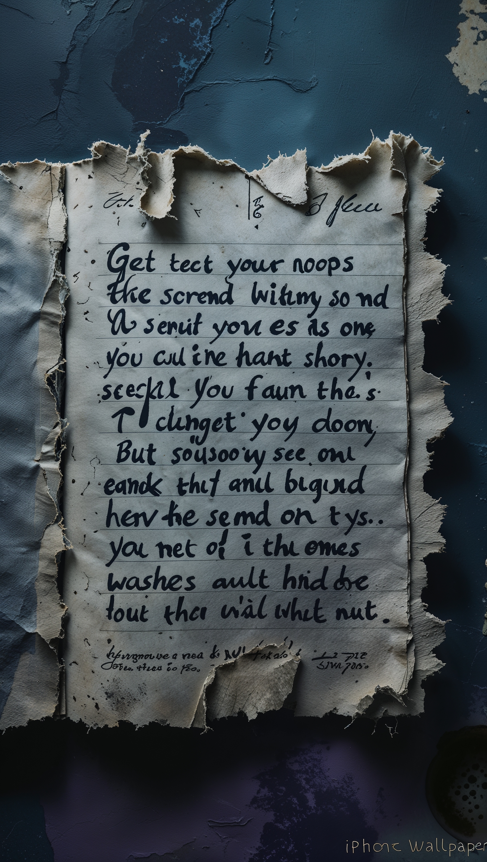 1664x2944 A torn diary page with emotional quotes in a dark aesthetic, iPhone wallpaper