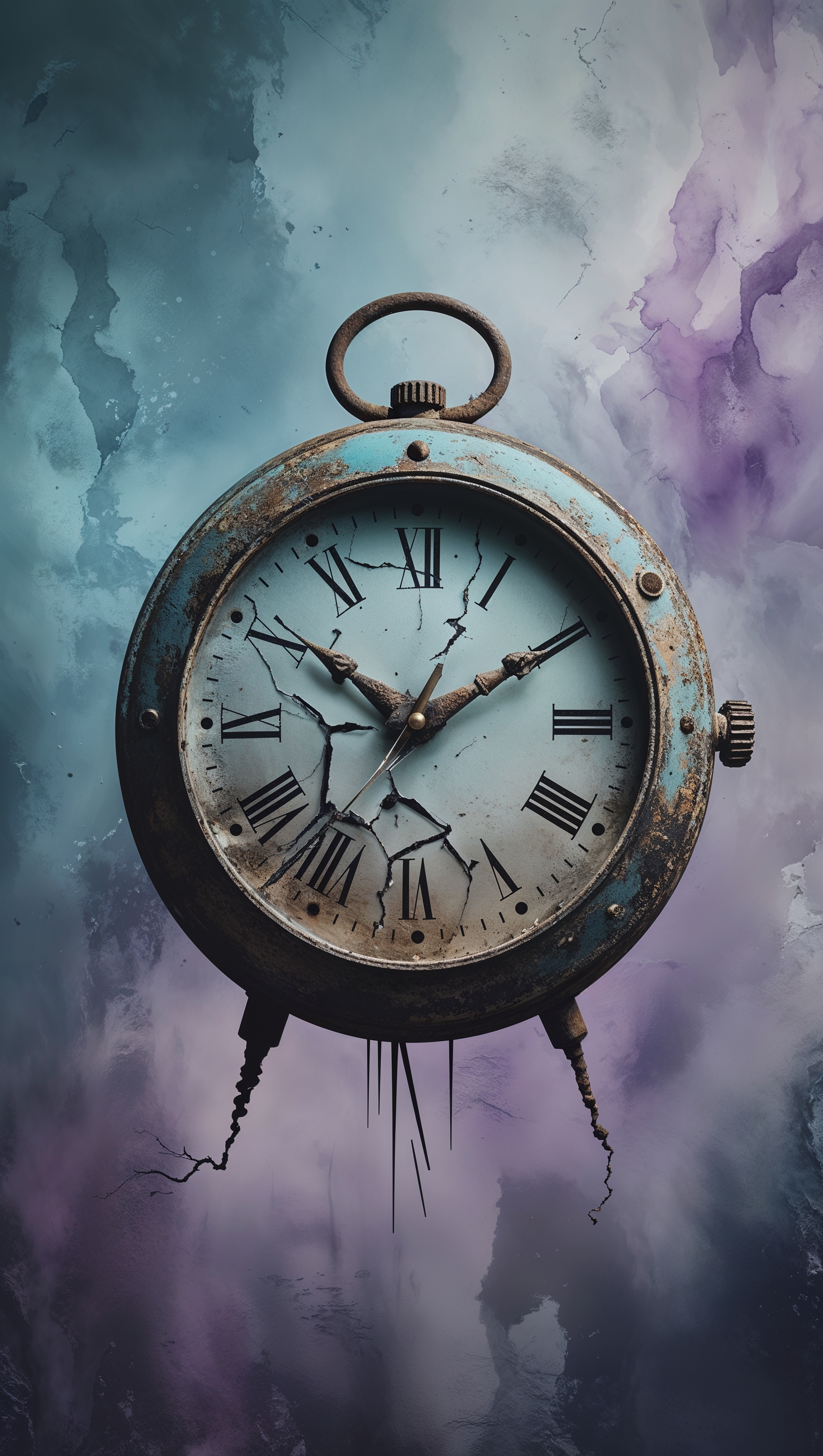1664x2944 A symbolic clock with broken hands, time stopped, emotional wallpaper for iPhone