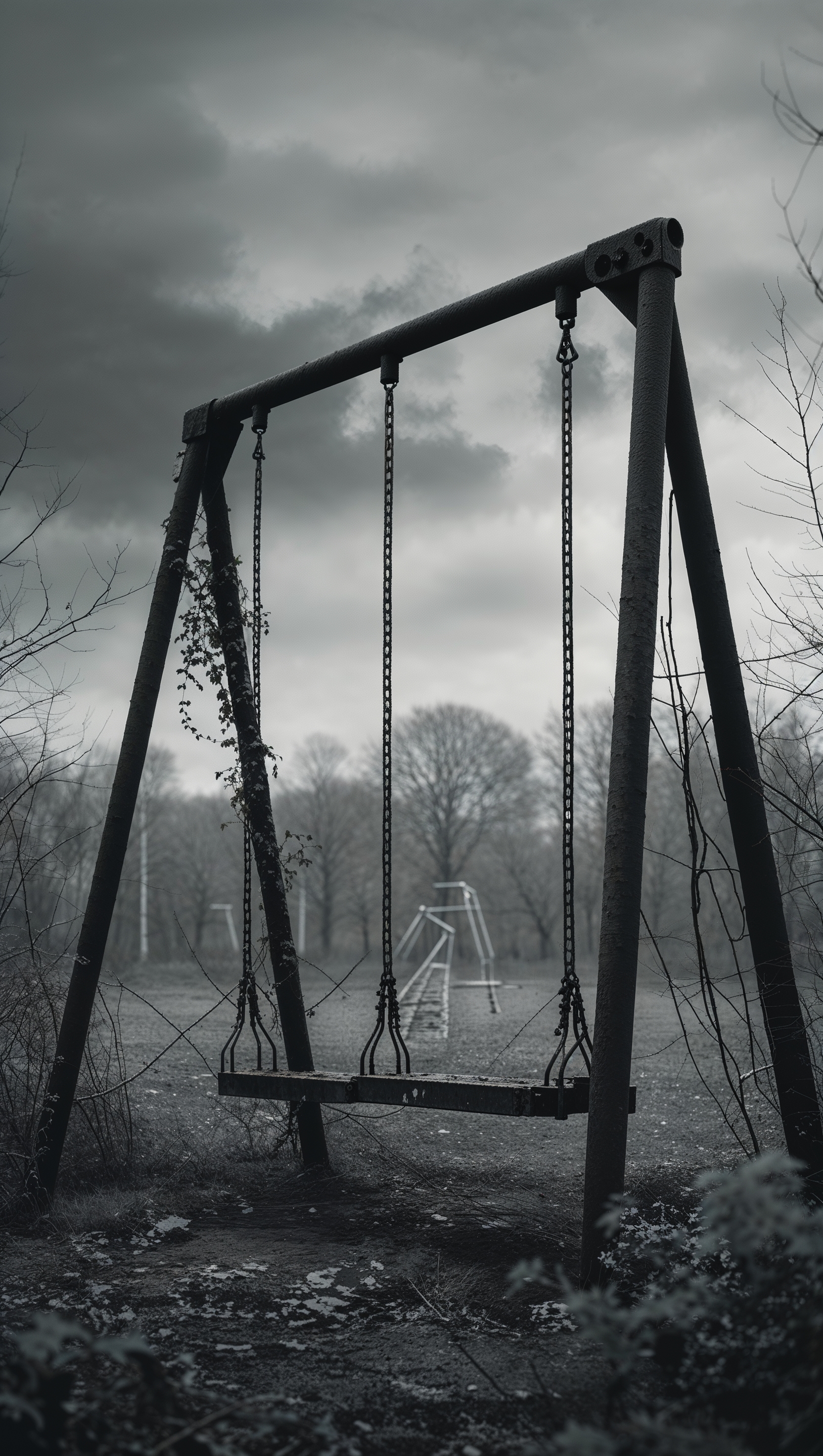1664x2944 A black and white photo of empty swings in an abandoned park, iPhone wallpaper