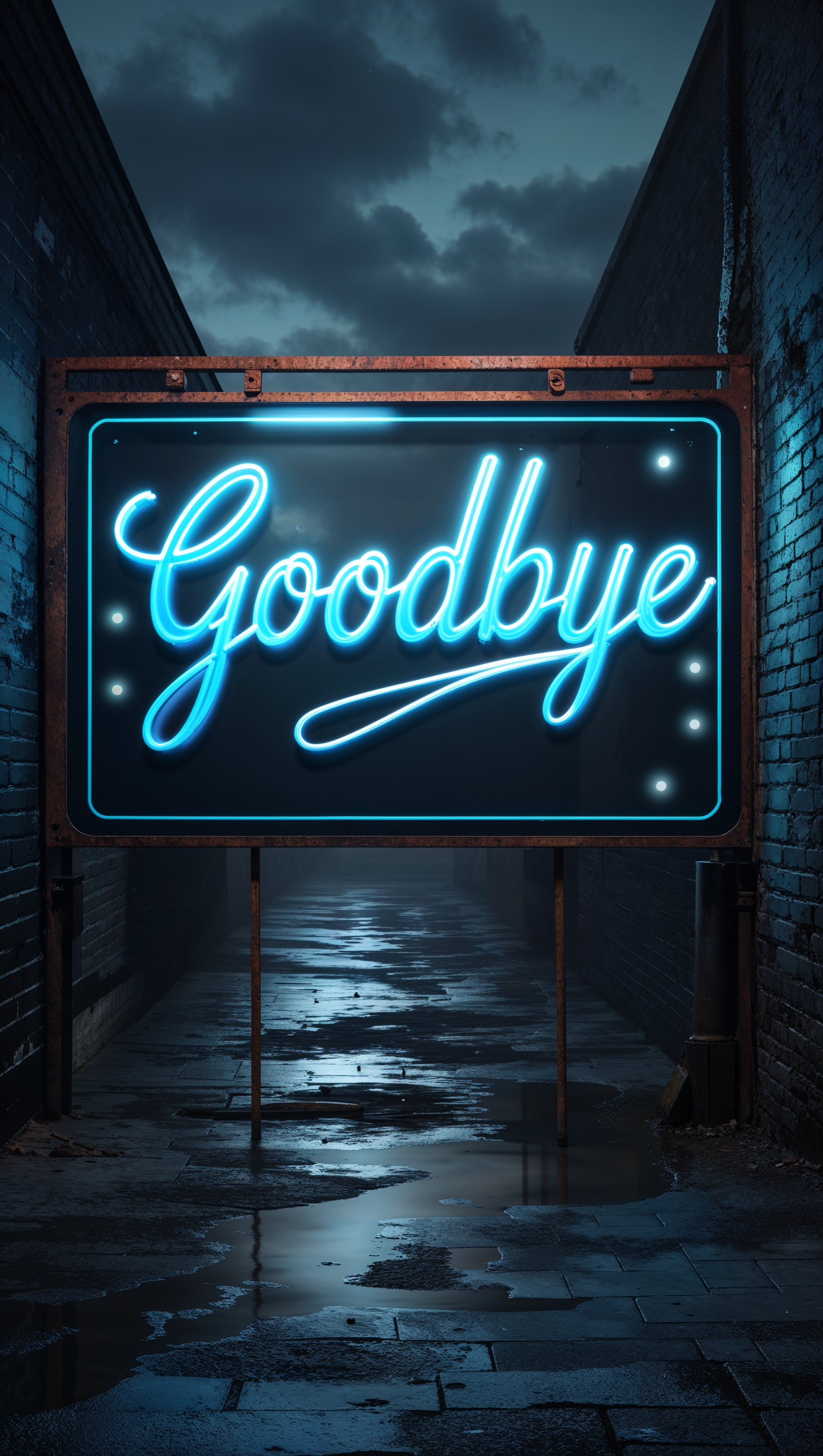 1664x2944 A neon sign in an empty alley that reads 'Goodbye', aesthetic iPhone wallpaper