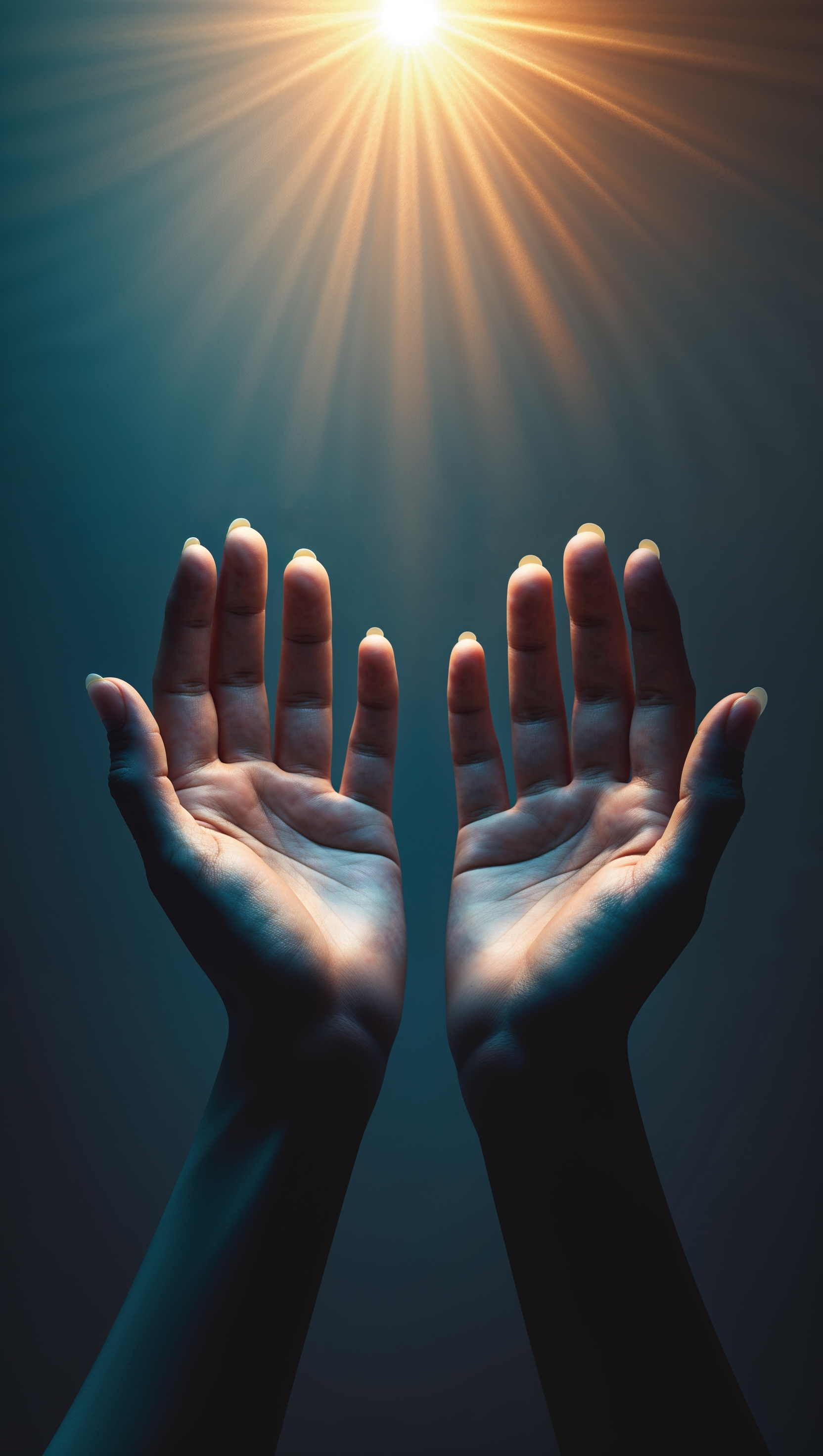 1664x2944 Hands reaching toward light from darkness, hope and struggle, iPhone wallpaper