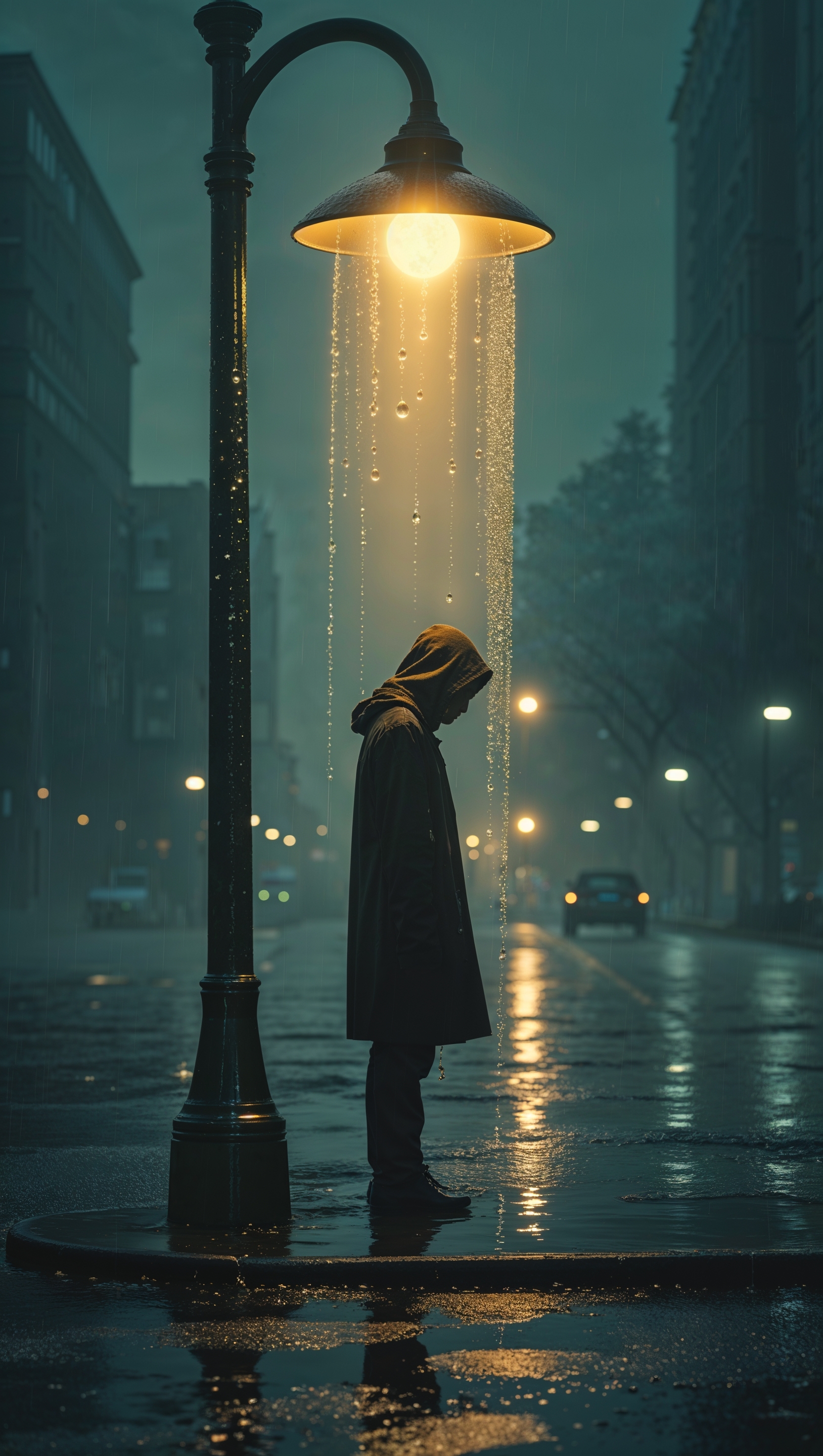 1664x2944 A lonely silhouette under a streetlight on a rainy night, iPhone wallpaper