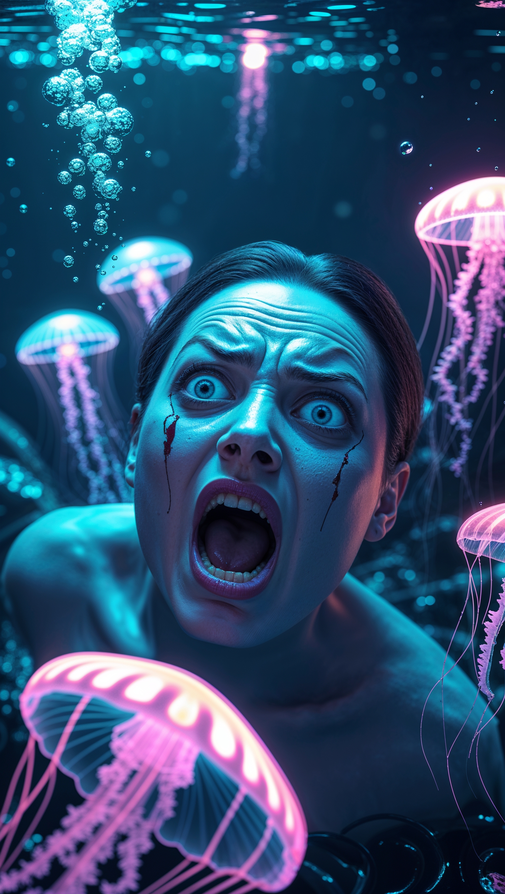 1664x2944 A person screaming silently underwater, digital surrealism, iPhone wallpaper